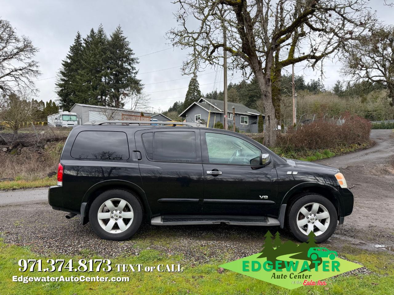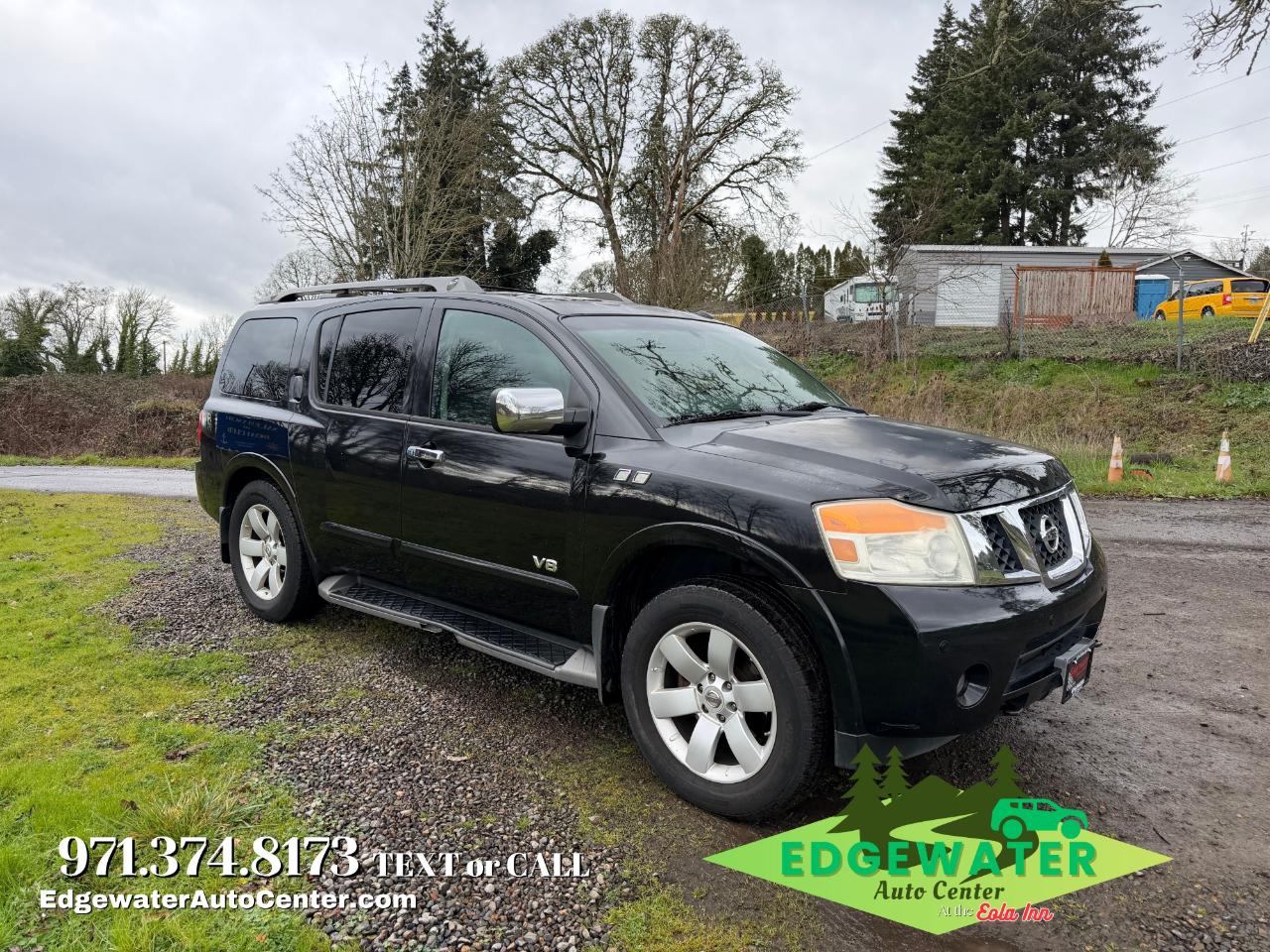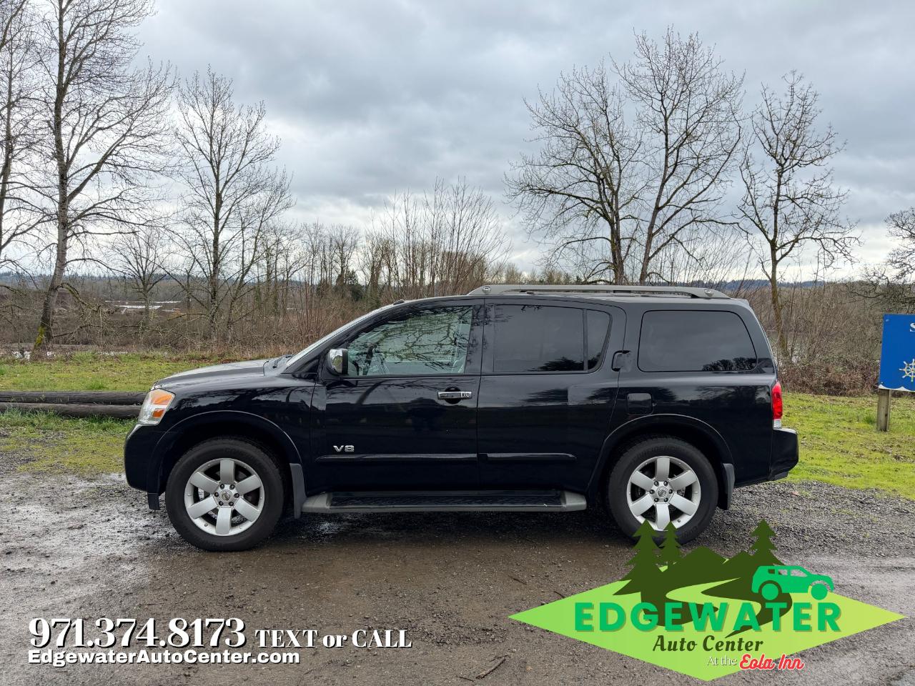 Inside, the SE trim is upgraded with a premium Leather interior and seating for eight. The cabin is designed for ultimate convenience, featuring dual-zone automatic climate control, power-adjustable pedals to fit any driver, and a 40/20/40 split-bench second row that allows for easy access to the third row. With 170,744 miles, this Armada is ready for more adventures. Standard safety features include roof-mounted curtain airbags for all three rows and Vehicle Dynamic Control (VDC), which helped it earn a 5-Star NHTSA Driver Frontal Crash Rating. At Edgewater Auto Center, we make big capability affordable: we offer all levels of financing and provide top Kelly Blue Book Value for trade-ins. Visit us today to experience this V8 powerhouse! Edgewater Auto Center LLC 4250 Salem Dallas Hwy NW, Salem OR 97304 Dealer #DL0937. Stock #12265, VIN 5N1AA08C68N604680.