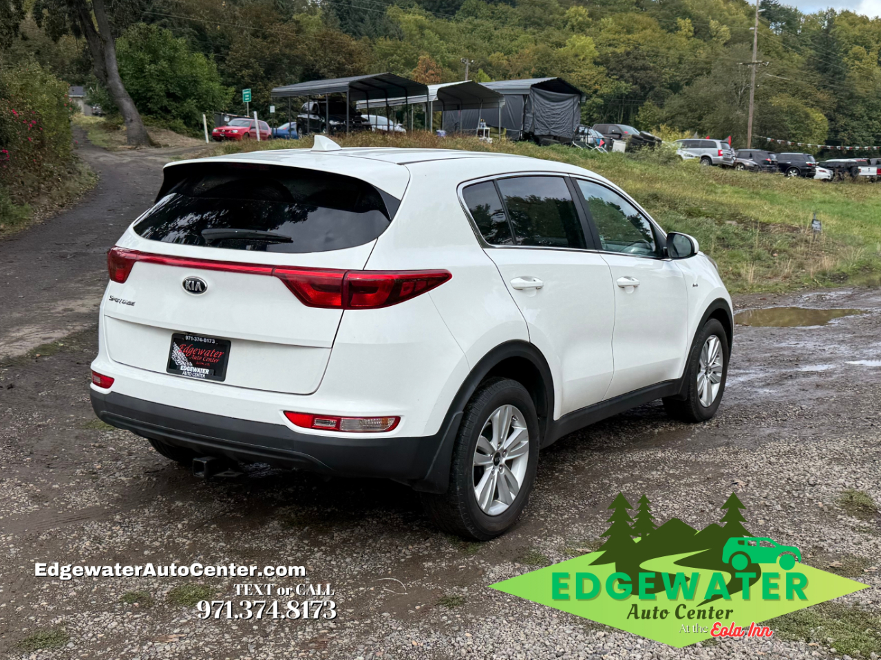 Check out this reliable White 2017 Kia Sportage LX AWD, a perfect SUV for all-weather performance with its intelligent All-Wheel Drive (AWD) system and smooth Automatic transmission. Power comes from the efficient and capable 2.4L V6 DOHC 24V engine. The interior features durable Cloth seating, making it comfortable and practical. With just 93,615 miles, this Sportage is well-maintained, backed by a clean, no-accidents CarFax and a history of regular oil changes, demonstrating excellent prior care. Priced aggressively at only $8,995, this vehicle is an outstanding deal, valued well below its KBB ($9,588) and CarFax ($12,440) appraisals. Don't miss this opportunity for an affordable, dependable SUV! Stock #12051, VIN: KNDPMCAC9H7289167. Edgewater Auto Center LLC 4250 Salem Dallas Hwy NW, Salem OR 97304 Dealer #DL0937